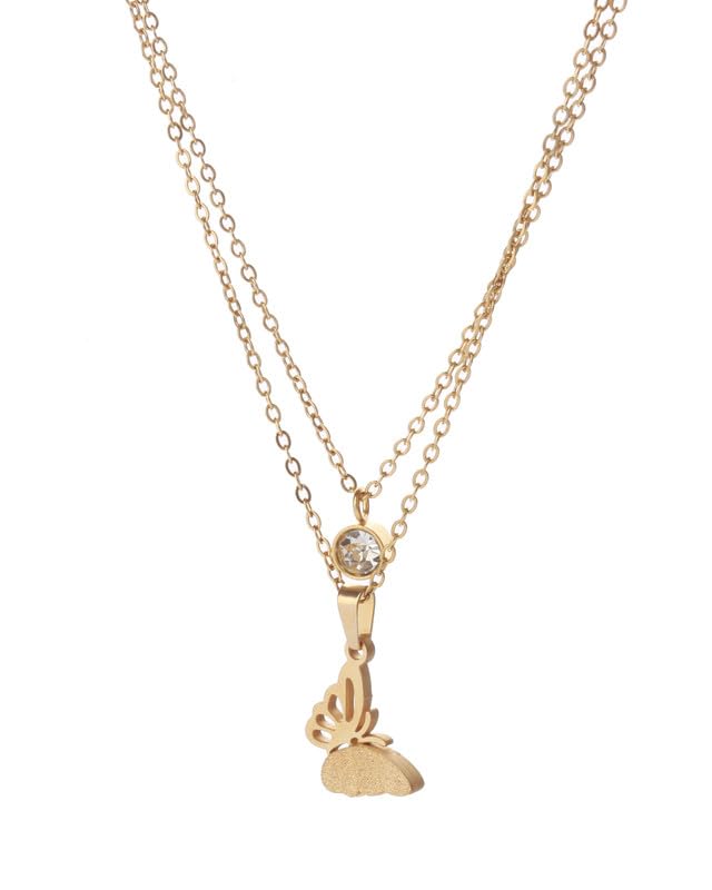 Generic - عقد بقلادة على شكل فراشة من الستانلس ستيل ببابين للنساء من بوكس هودوم، ذهبي B-O-X-N-93