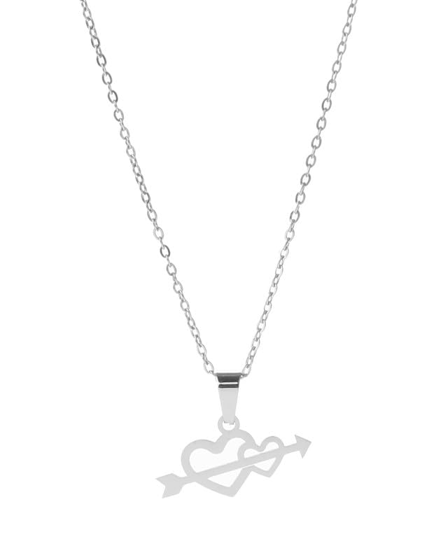 Generic - عقد بقلادة على شكل قلب من الستانلس ستيل للنساء من بوكس هودوم، فضي B-O-X-N-104