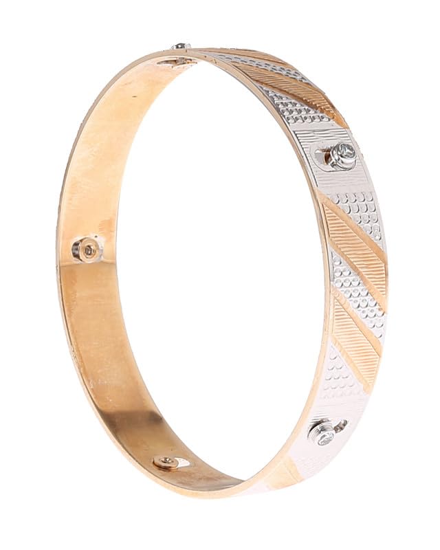 Box Hodom - سوار حريمي عريض من بوكس هودوم الفولاذ مقاوم للصدأ مزين بفصوص لون ذهبي وفضي - 4