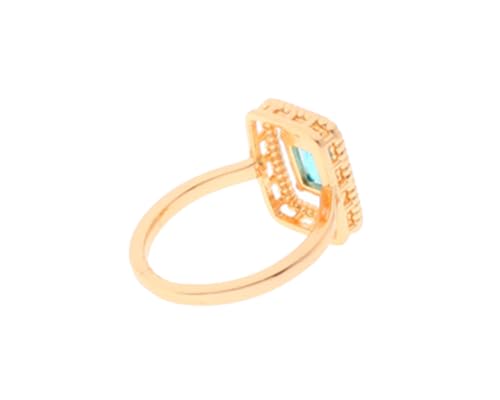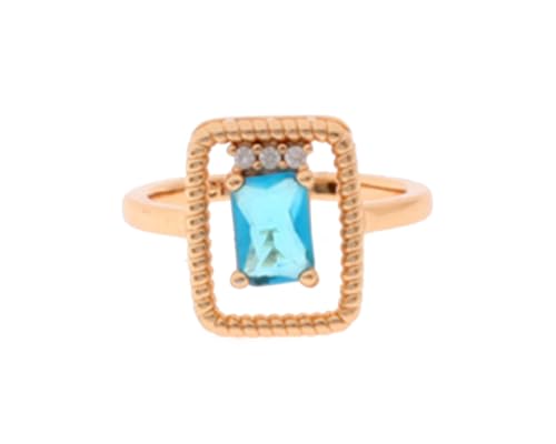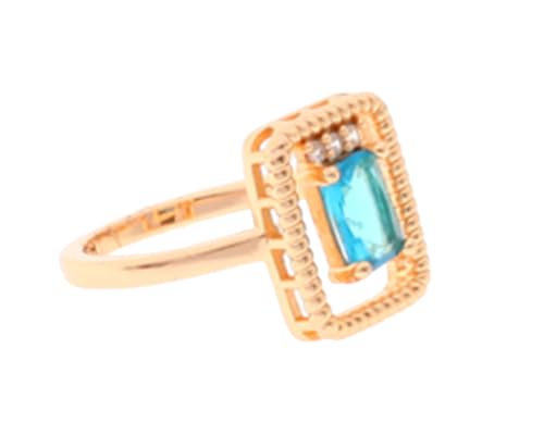 Box Hodom - خاتم عريض أنيق بع فص لامع باللون الأزرق للنساء مقاس 7 , ذهبي Ring-148