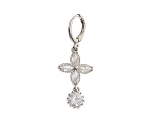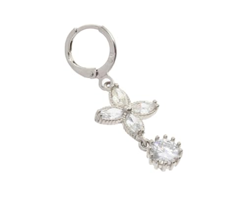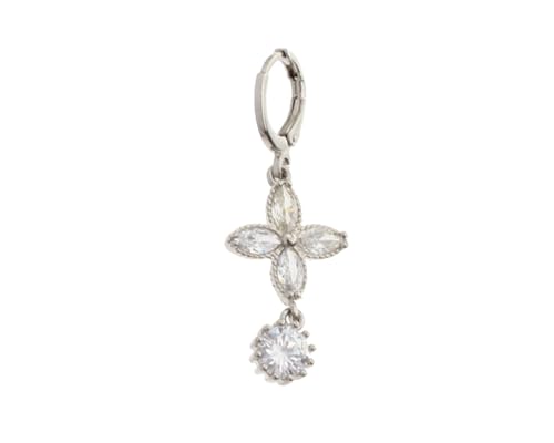 Box Hodom - أقراط أذن على شكل وردة به فصوص كريستال لامعة ودلاية للنساء , فضي Halk-153