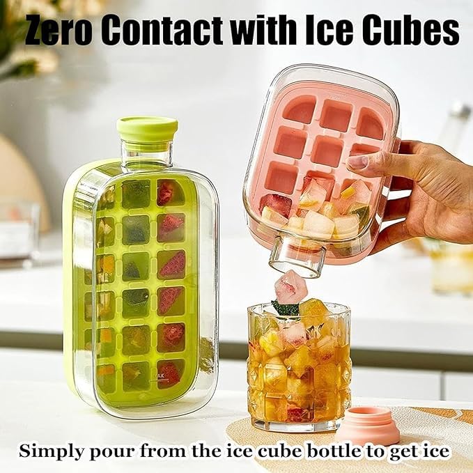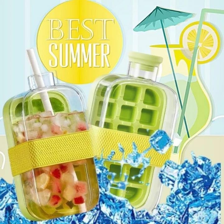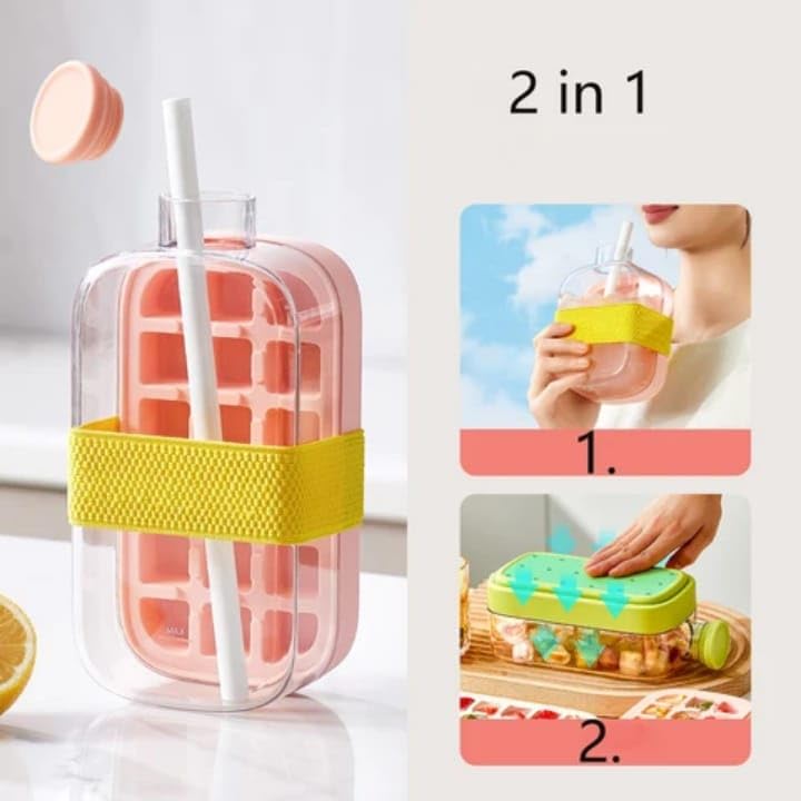 - تصميم 2 في 1 ليضمن الراحة اليومية ويجعلك تستمتع بالمشروبات الباردة في أي مكان. صندوق مكعبات الثلج الذكي هذا يجمع بين قالب ثلج وزجاجة مشروبات في منتج واحد، مما يتيح لك التجميد والضغط والشرب دون فوضى أو الحاجة لأدوات إضافية. مثالي للمنزل والجيم والسفر.