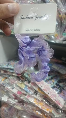 Generic - مجموعة ربطات شعر مرنة شبكية كبيرة بالوان ارجوانية بنمط كوري، قطعتين