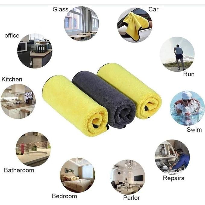 - تصميم مزدوج الجوانب: منشفة فاخرة من الألياف الدقيقة تتميز بجانب أصفر مخملي لتنظيف لطيف وجانب رمادي للمهام الأكثر صعوبة، مثالية لتفاصيل السيارات الاحترافية