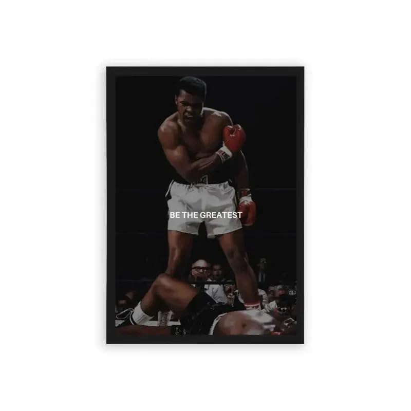 Generic - ملصق مؤطر لملاكم "كن الأعظم" – طباعة فنية لأيقونة بطل الملاكمة (اسود, 20*30 سم)