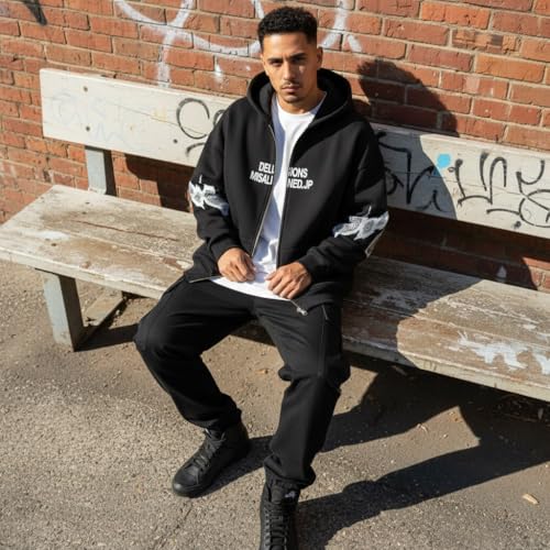 Generic - هودي رجالي بوكس فيت بسوستة 2 جرار - سويت شيرت شتوي خامة ميلتون إسفنجي قطن 100% ثقيل مطبوع جرافيك - جاكيت كاجوال اوفر سايز بغطاء رأس للرجال