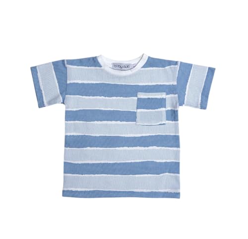 baby club - تي شيرت مخطط باكمام قصيرة للاولاد، ازرق وابيض، جيب على الصدر (من 1 الى 4 سنوات)