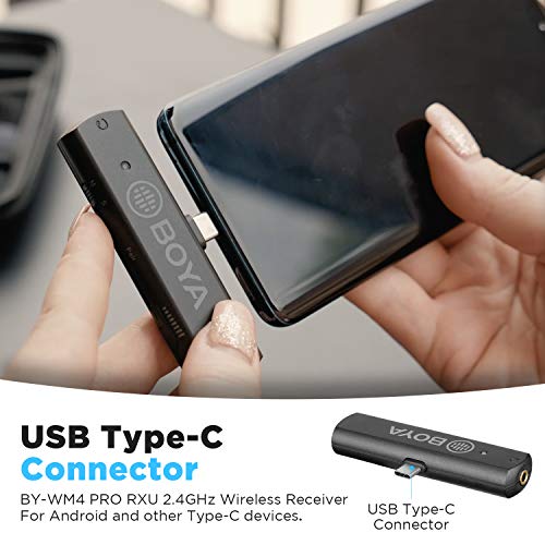BoyaMic - نظام ميكروفون لاسلكي لافلير TX+RX مع موصل ريسيفر USB C موديل BY-WM4 برو متوافق سامسونج وهواوي وايباد واجهزة اندرويد من بويا أحادى متعدد الألوان