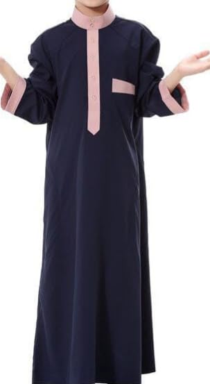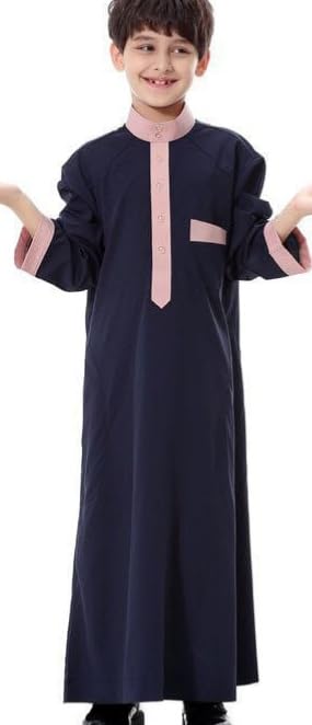Generic - جلباب أولادي بأزرار، أزرق داكن مع وردي، تصميم عصري بجيب وياقةمن سن 6 الي 12 سنة