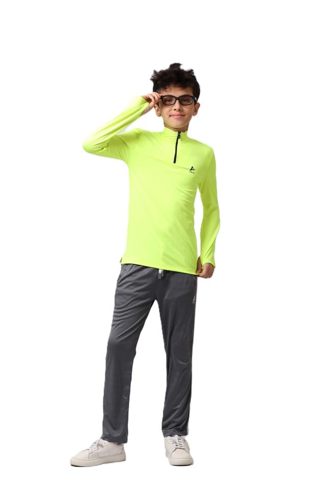 ANJA - تي شيرت رياضي باكمام طويلة للاولاد بلون اصفر نيون - مقاس جاف، تصميم جيد التهوية، (4-6 سنوات)