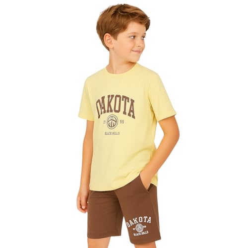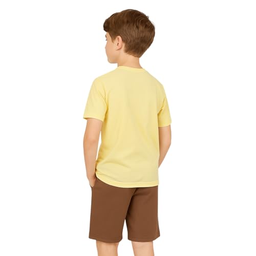 Generic - طقم بيجامةللأولاد، تي شيرت أصفر وشورت بني، قطن مريح للصيف