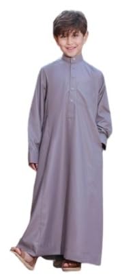 عام - جلابية بتصميم الزي الإسلامي التقليدي بأكمام طويلة للأولاد، لون رمادي