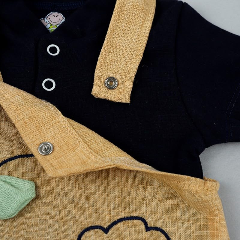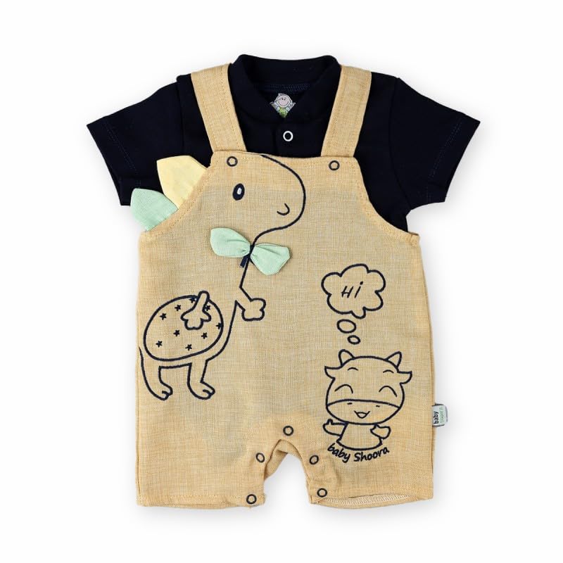 Generic - سالوبيت مطرز من قطعتين للأولاد، لون بيج، مقاس 3-6 أشهر