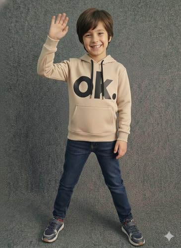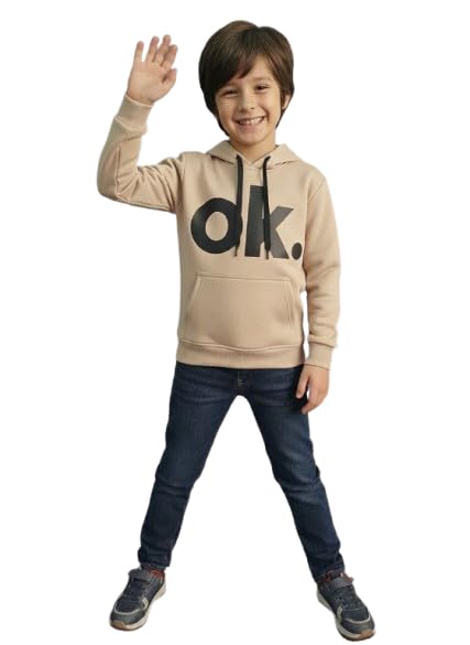 Generic - سويت شيرت أولادي شتوي "هودي" بأكمام طويلة وطبعة "ok." عصرية - مزود بغطاء رأس وجيب أمامي - خامة مريحة ودافئة للأطفال من سن 3 إلى 6 سنوات