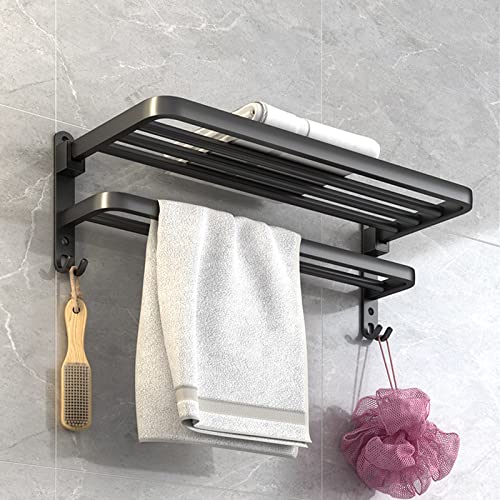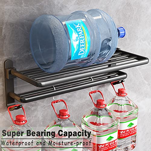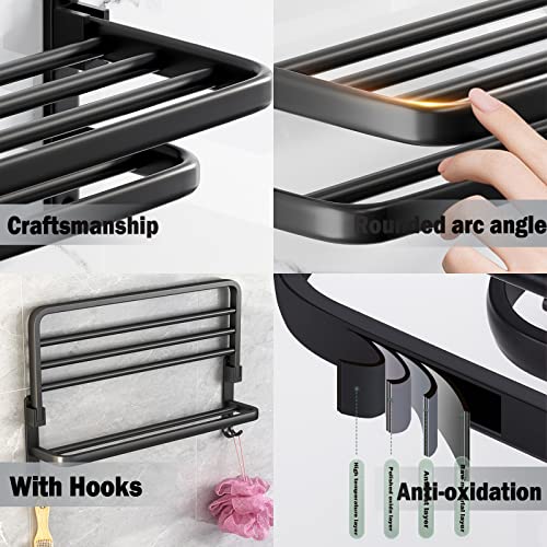 BOZWELL - بوزويل رف مناشف الحمام مع قضبان مناشف مزدوجة وخطافات، رف منشفة 16 انش مع قضيب منشفة، حامل منشفة 1021-B-40 (اسود غير لامع)