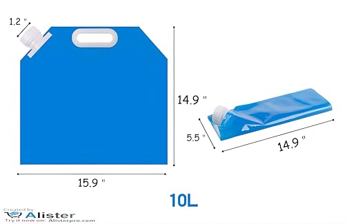 - 🏅 يأتي المنتج بحجمين: سعة 5 لتر وسعة 10 لتر. تبلغ أبعاد الحقيبة سعة 5 لتر حوالي 32.7 سم × 30.5 سم (12.87 بوصة × 12.01 بوصة) عند فتحها وبدون ماء، بينما يبلغ قياس الحقيبة سعة 10 لتر حوالي 38.5 سم × 41.7 سم (15.2 بوصة × 16.4 بوصة) في نفس الظروف.