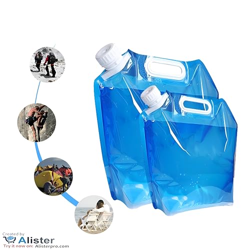 Generic - إبريق ماء خالٍ من مادة BPA سعة 5 لتر حاوية مياه بلاستيكية قابلة للطي حقيبة للرياضات الخارجية والتخييم عبوتان الان لدى 🏅 امازين