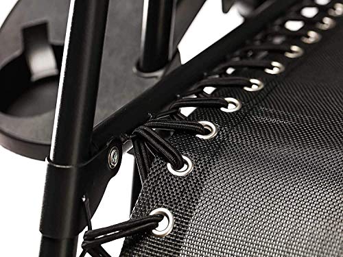 BPIL - كرسي فناء مضاد للجاذبية من بي بي اي ال، كرسي حديقة كبير الحجم للاماكن الخارجية مقاس XL، كرسي مضاد للجاذبية، كرسي فناء لحمام السباحة والتخييم مع حامل اكواب (2)، بلاستيك بي في سي، أسود