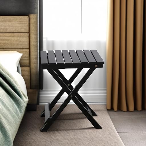 BplusZ - طاولة جانبية صغيرة من الخشب بتصميم مربع محمول قابل للطي بي آند زد بطول 46 سم أسود موديل KD-40B