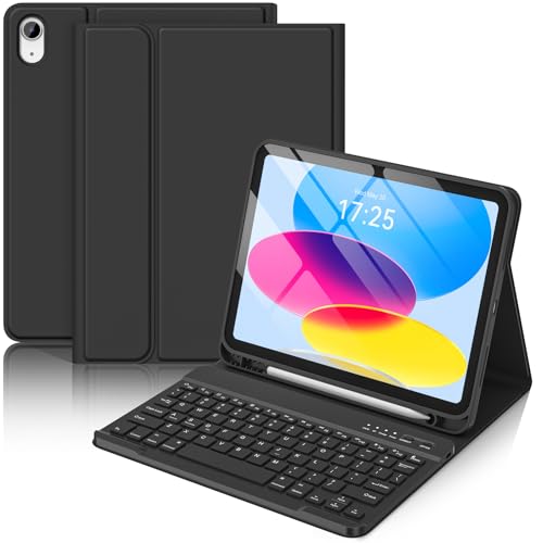 BQSS - حافظة كيبورد اي باد الجيل العاشر 10.9 بوصة 2022 ذكية رفيعة لجهاز اي باد الجيل العاشر 2022 مع كيبورد لاسلكية قابلة للفصل وحامل قلم من بي كيو اس اس (لون أسود)