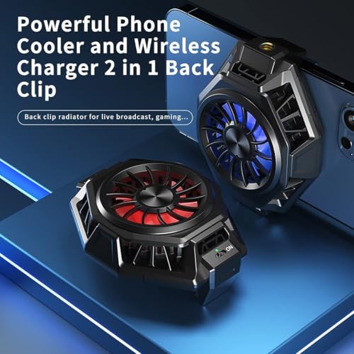 Generic - مبرد موبايل وشاحن لاسلكي 2 في 1 برو بمشبك خلفي من بي ار 20، مروحة تبريد للموبايل للألعاب والبث المباشر وتيك توك وردياتير اشباه الموصلات لنظام iOS/أندرويد