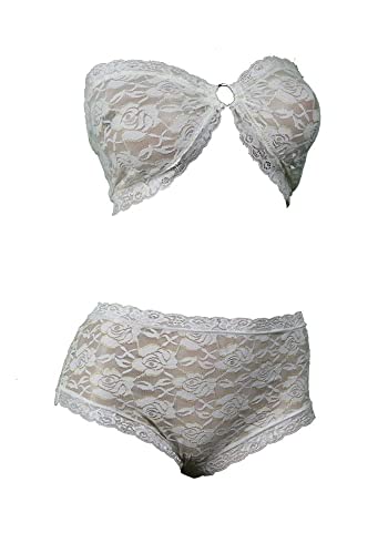 Generic - طقم لانجيري نسائي من الدانتيل مكون من قطعتين برا واندر بالون الرمادي
