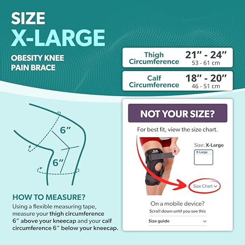 BraceAbility - برايس ابيليتي دعامة ركبة مفصلية من اوبيسيتي - مقاس XL الوزن الزائد الى كبير لعلاج التهاب المفاصل للنساء والرجال تخفيف الام السمنة وعدم استقرار الركبة وضعف الاربطة بديل النيوبرين .