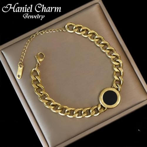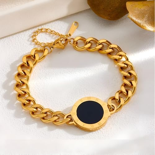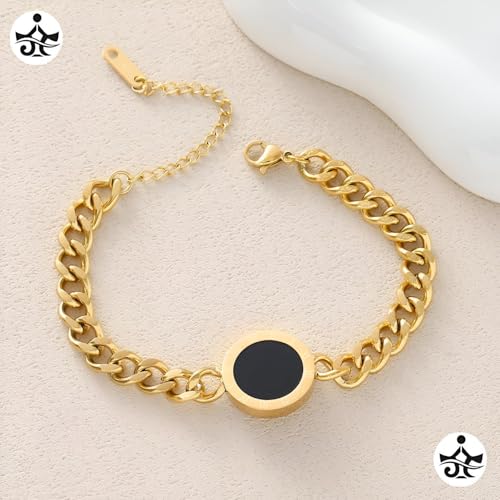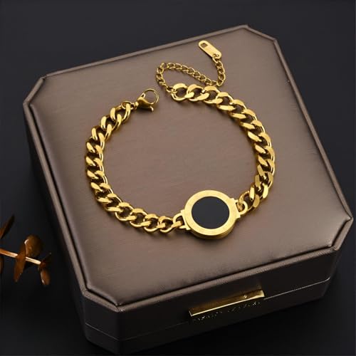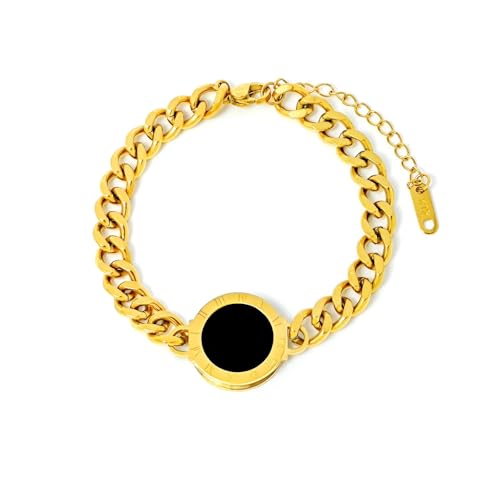 Generic - سوار اكسسوار - سلسلة ذهبية مع دلاية دائرية سوداء فريدة من نوعها، هيكل حلقات ربط وإغلاق قابل للتعديل لمظهر عصري