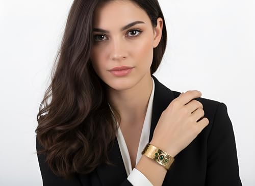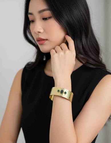 Generic - سوار بتصميم عين القطة من الحجر الطبيعي العتيق هدية للنساء، هدايا خاصة من الستانلس ستيل مطلي بالذهب عيار 18 قيراط لعيد الحب - قابل للتعديل