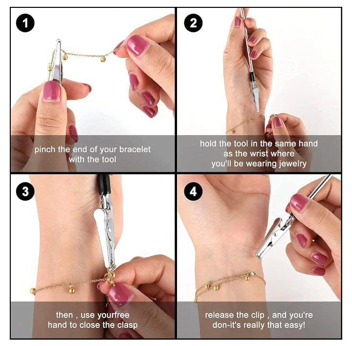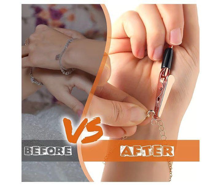 - تثبيت السوار بدون مجهود - مصمم لحمل وتثبيت السوار أو السلسلة بأمان أثناء تثبيت المشبك، هذه الأداة تجعل ارتداء المجوهرات أسهل دون مساعدة. مثالي للأشخاص الذين يعانون من المشابك الصغيرة، فهو يوفر تحكمًا دقيقًا ويقلل من الإحباط أثناء استخدام الملحقات اليومي.