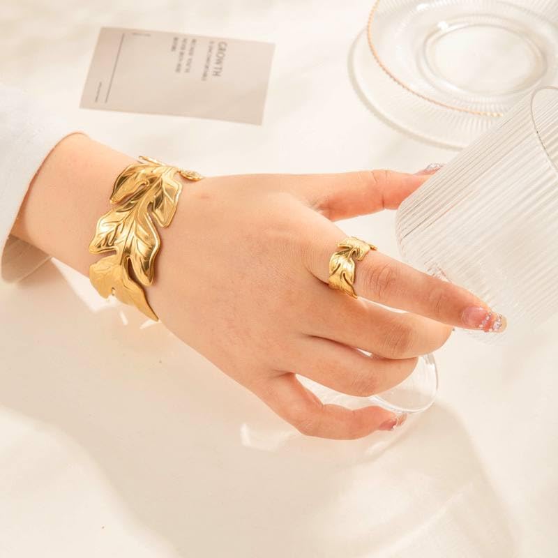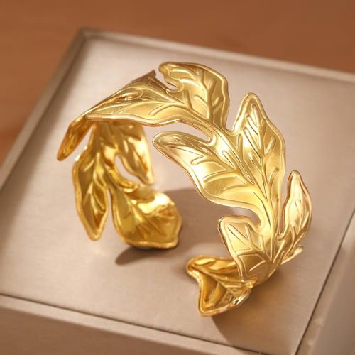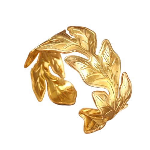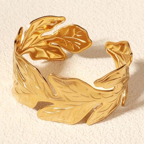 Generic - سوار بتصميم كلاسيكي على شكل ورقة شجر من الستانلس ستيل مطلي بالذهب عيار 18 قيراط للنساء، هدية رائعة للصداقة وعيد الحب قابل للتعديل