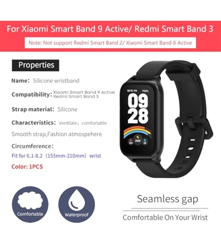 Generic - سوار متوافق مع سوار شاومي سمارت باند 9 اكتيف/ريدمي سمارت باند 3، سوار سيليكون ناعم ومريح متوافق
