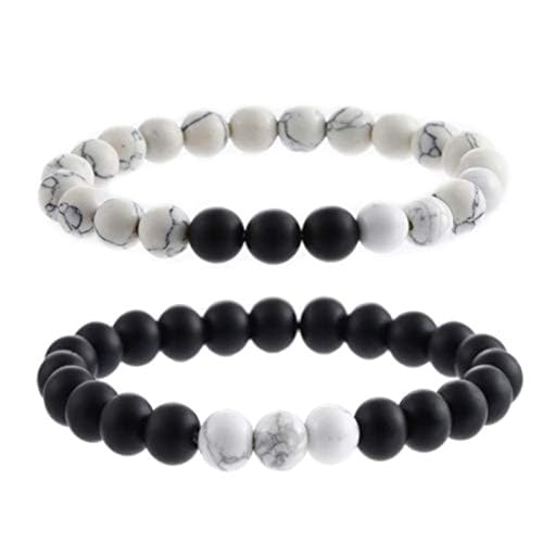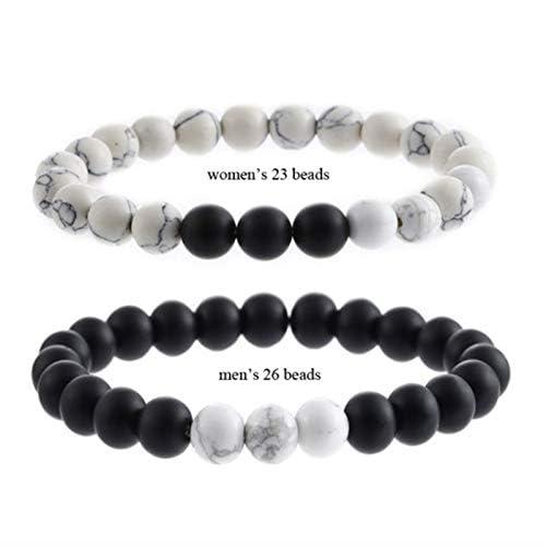 generic - سوار للزوجين من العقيق الاسود غير اللامع والعقيق الابيض المصنفر 8 ملم، سوار خرز له ولها