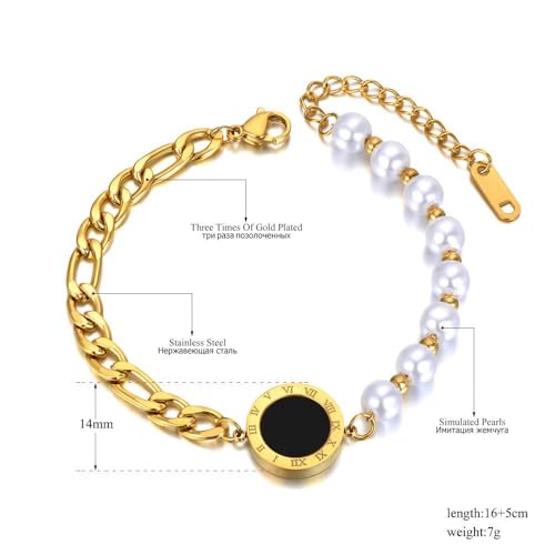 Generic - سوار بتصميم بسيط وأنيق بتصميم نصفه من اللؤلؤ الصناعي ونصفه من الفولاذ المقاوم للصدأ لإظهار شخصيتك مطلي بالذهب عيار 18 قيراط للنساء