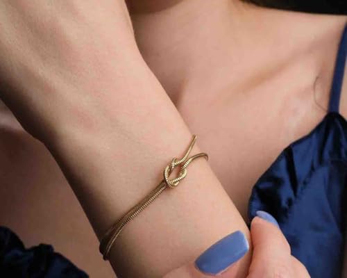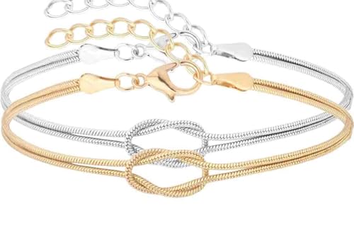 Generic - سوار مزدوج الطبقات بعقدة متشابكة ورمز الحب اللانهائي للنساء من الستانلس ستيل مطلي بالذهب عيار 18 قيراط مناسب كهدية لعيد الحب - قطعتين