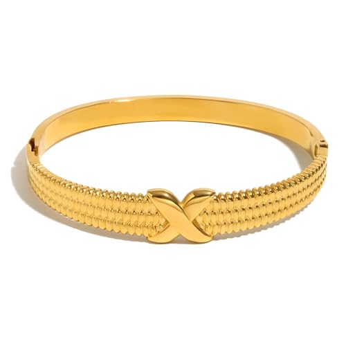 Generic - سوار انيق متعدد الاستخدامات من الستانلس ستيل مطلي بالذهب عيار 18 قيراط بتصميم ابزيم على شكل حرف X من اجل راقي المرأة واناقتها