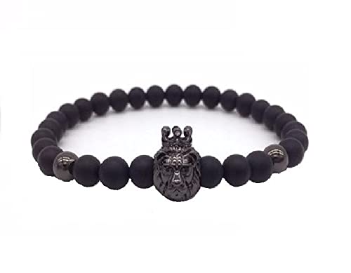 Generic - سوار الطاقة والشفاء متعدد الاحجار مع راس الاسد الملك 6مم، للجنسين
