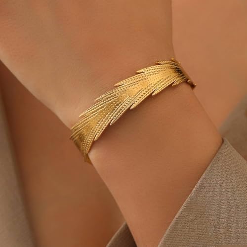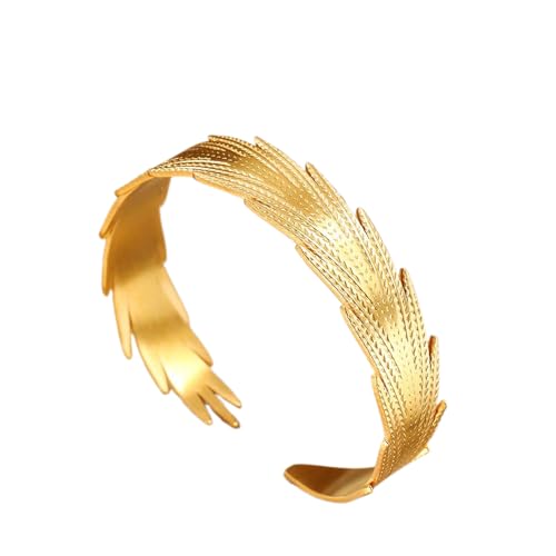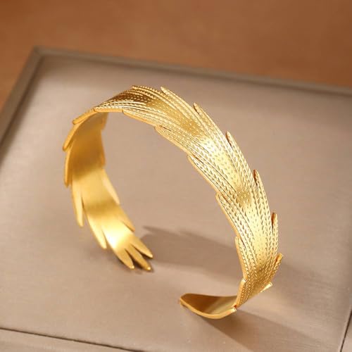 Generic - خاتم بتصميم ريشة من الفولاذ المقاوم للصدأ مطلي بالذهب عيار 18 قيراط - قابل للتعديل