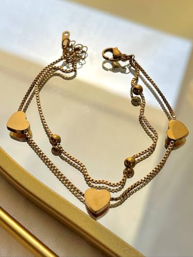 Generic - سوار للنساء، سوار سلسلة مضاد للبهتان، سوار للنساء على شكل قلب من الستانلس ستيل، سوار ذهبي انيق، اكسسوارات يد مجوهرات للنساء والفتيات