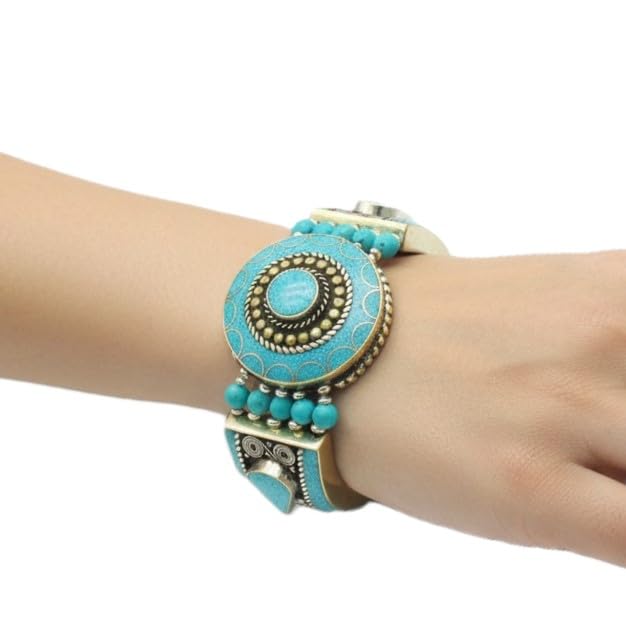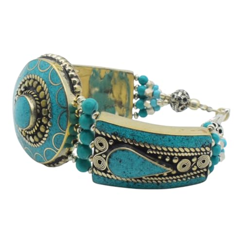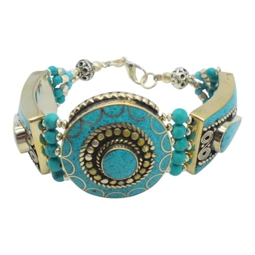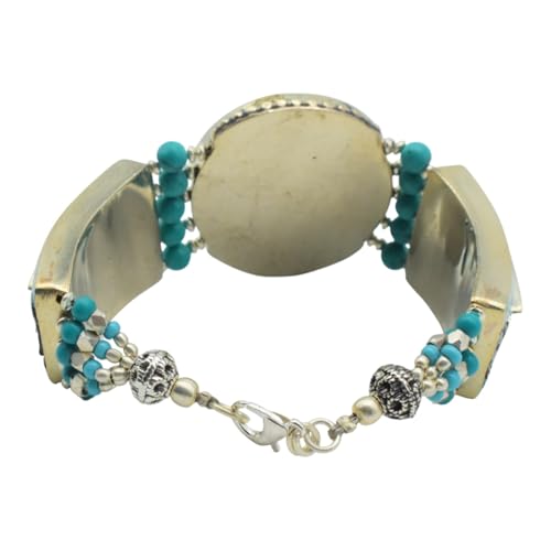 Indian Stones MA - اسوره هندي فاخرة من الفضة المخلوطة بالنحاس اقل من العيار مرصع بأحجار طبيعية كريمة من المرجان
