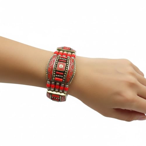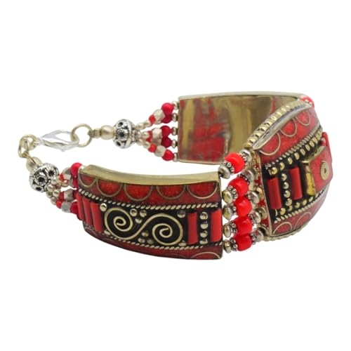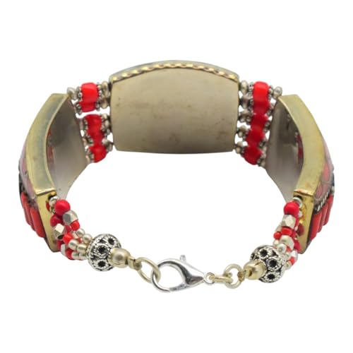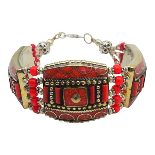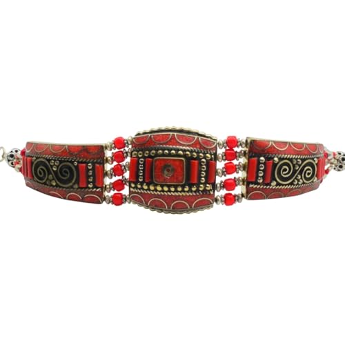 Indian Stones MA - اسوره هندي فاخرة من الفضة المخلوطة بالنحاس اقل من العيار مرصع بأحجار طبيعية كريمة من الفيروز والمرجان - تركواز احمر B3
