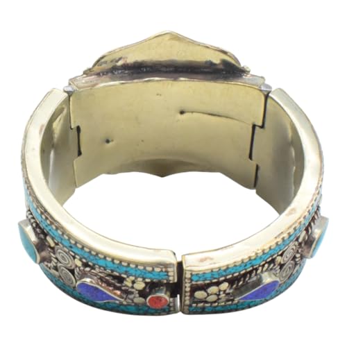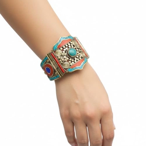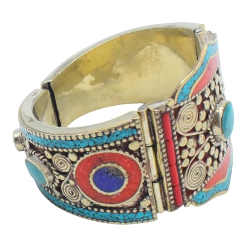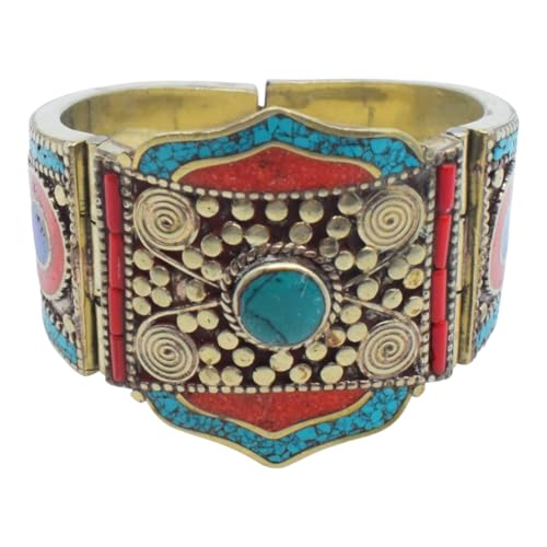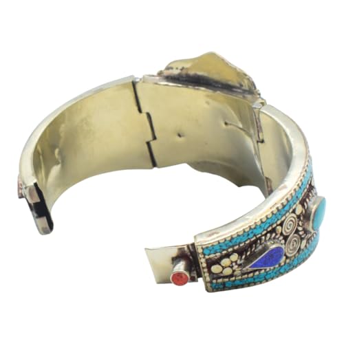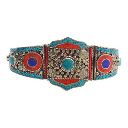 Indian Stones MA - اسوره هندي فاخرة من الفضة المخلوطة بالنحاس اقل من العيار مرصع بأحجار طبيعية كريمة من الفيروز ولابس لازولي والمرجان - متعدد الالوان B29