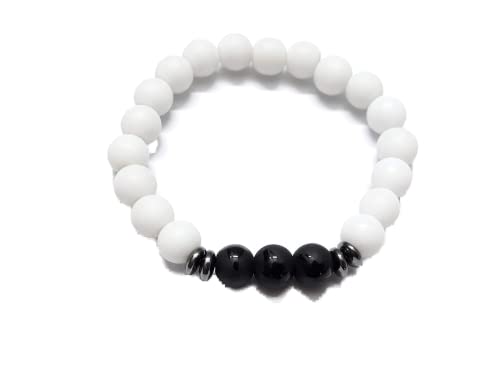 Other - اسورة من العقيق الابيض و حجر الاونكس المتعدد مع فواصل هيماتيت، للجنسين
