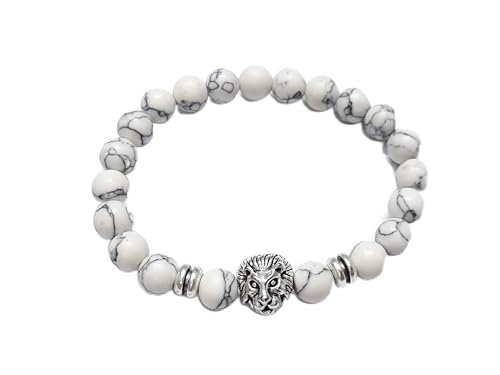 Other - اسورة من حجر الهوالايت مع شكل اسد فضي مع فواصل معدن، للنساء