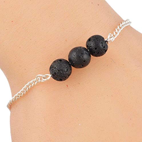 Generic - سوار من خليط معدني مع حبات الحجر البركاني، للنساء