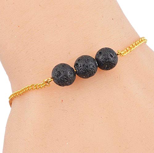 Generic - سوار من خليط معدني مع حبات الحجر البركاني - ذهبي، للنساء