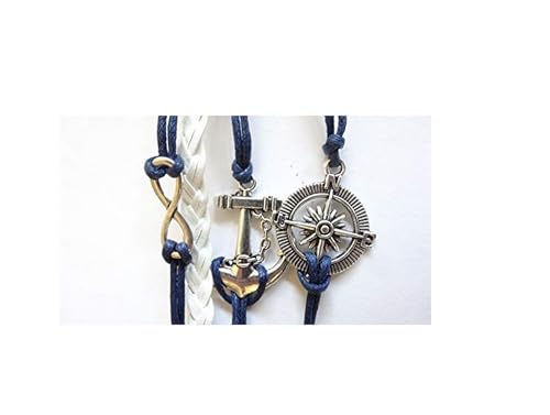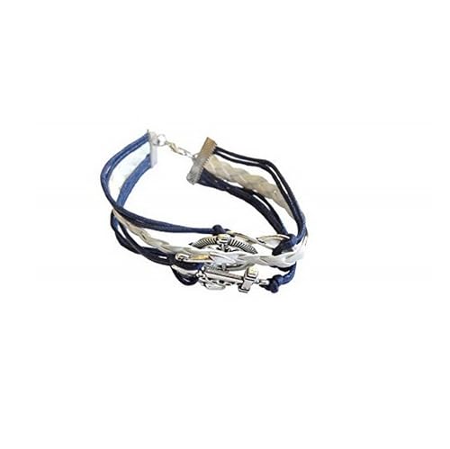 Other - اسورة من الجلد 8 دور لون كحلى مع ابيض مع أشكال معدنية فضى رقم الصنف 711 - 1، للبنات.