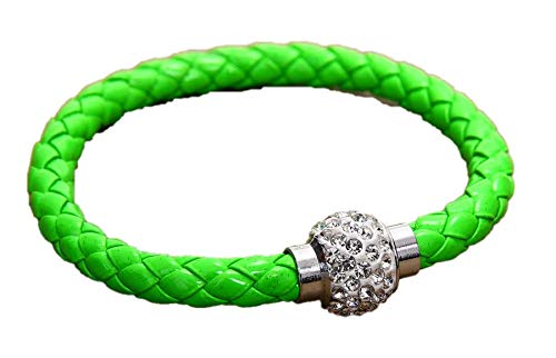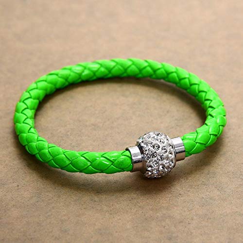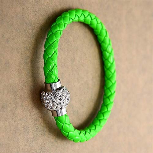 generic - سوار طاولة من الجلد بلون اخضر مع كرة من الكريستال