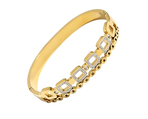 Generic - سوار كوادراتو مرصع بحجر الزركونيا والكريستال هدية انيقة للنساء في اعياد الميلاد والكريسماس والعطلات الصيفية وعيد الحب وعيد الام - ستانلس ستيل مطلي بالذهب عيار 18 قيراط