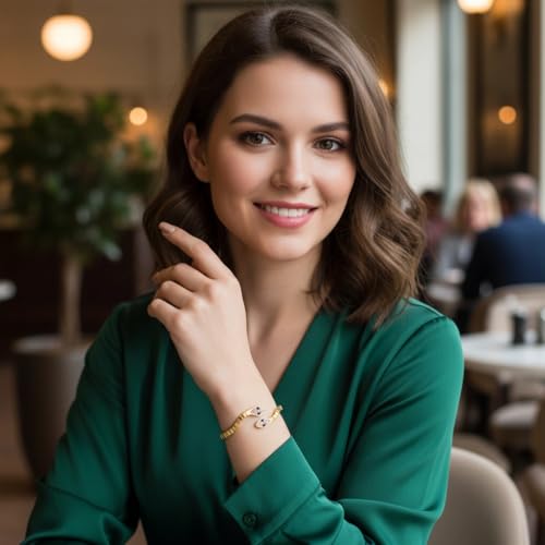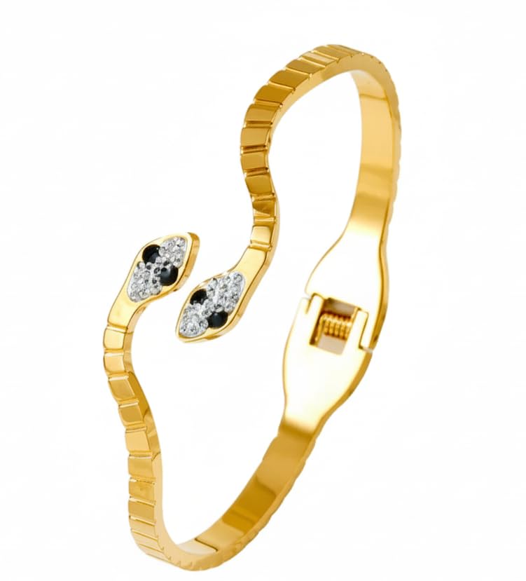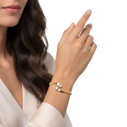 Generic - سوار بتصميم ثعبان مزدوج أنيق للنساء في أعياد الميلاد والكريسماس والعطلات الصيفية وعيد الحب وعيد الأم من فولاذ مقاوم للصدأ بطلاء ذهبي عيار 18K